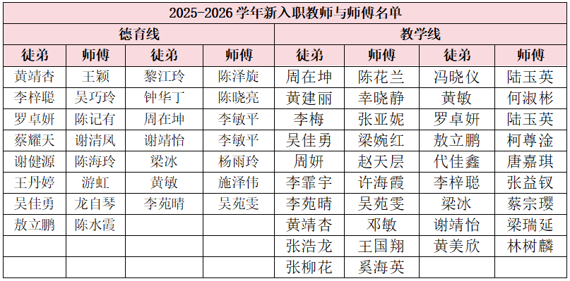 仪式由教学处许海霞主任主持,她首先宣读本学年师徒结对名单,明确了教学教研与德育管理两大领域的师徒帮扶职责,为后续结对工作划定清晰方向。